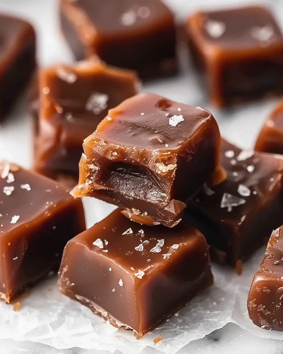 Coating: Dip each caramel square into the melted chocolate, allowing the excess to drip off. Ensure they are well-coated and place them on a parchment-lined baking sheet.