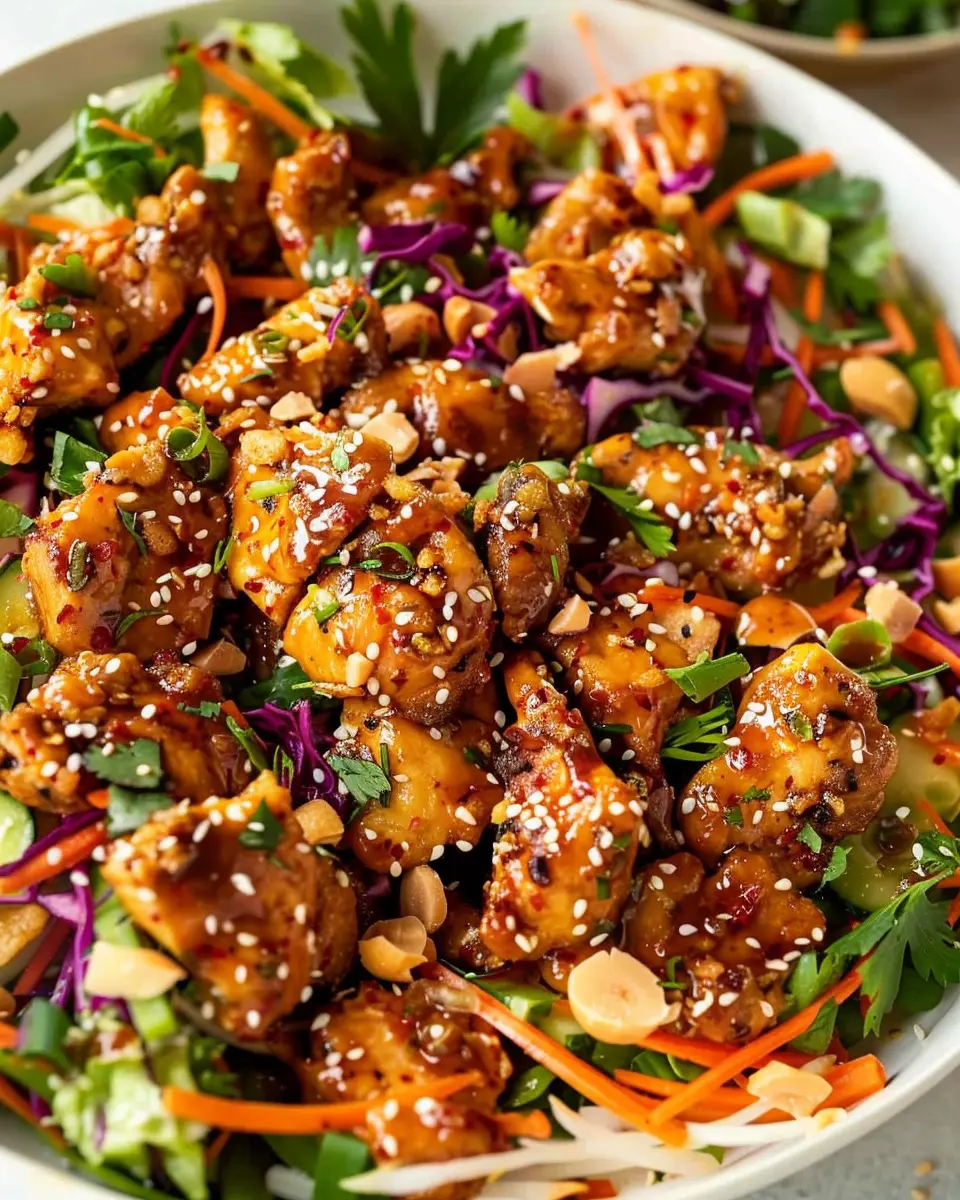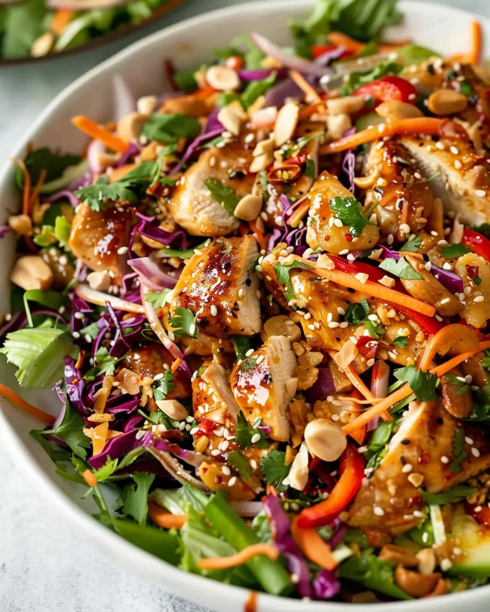 One of the best parts about the Asian Chicken Crunch Salad is its vibrant mix of textures and flavors. Crunchy vegetables meet tender chicken, all tossed in a zesty, peanut-based dressing. And you don’t need to worry about it getting soggy; it holds up beautifully in the fridge, making it a fantastic choice for meal prep.
