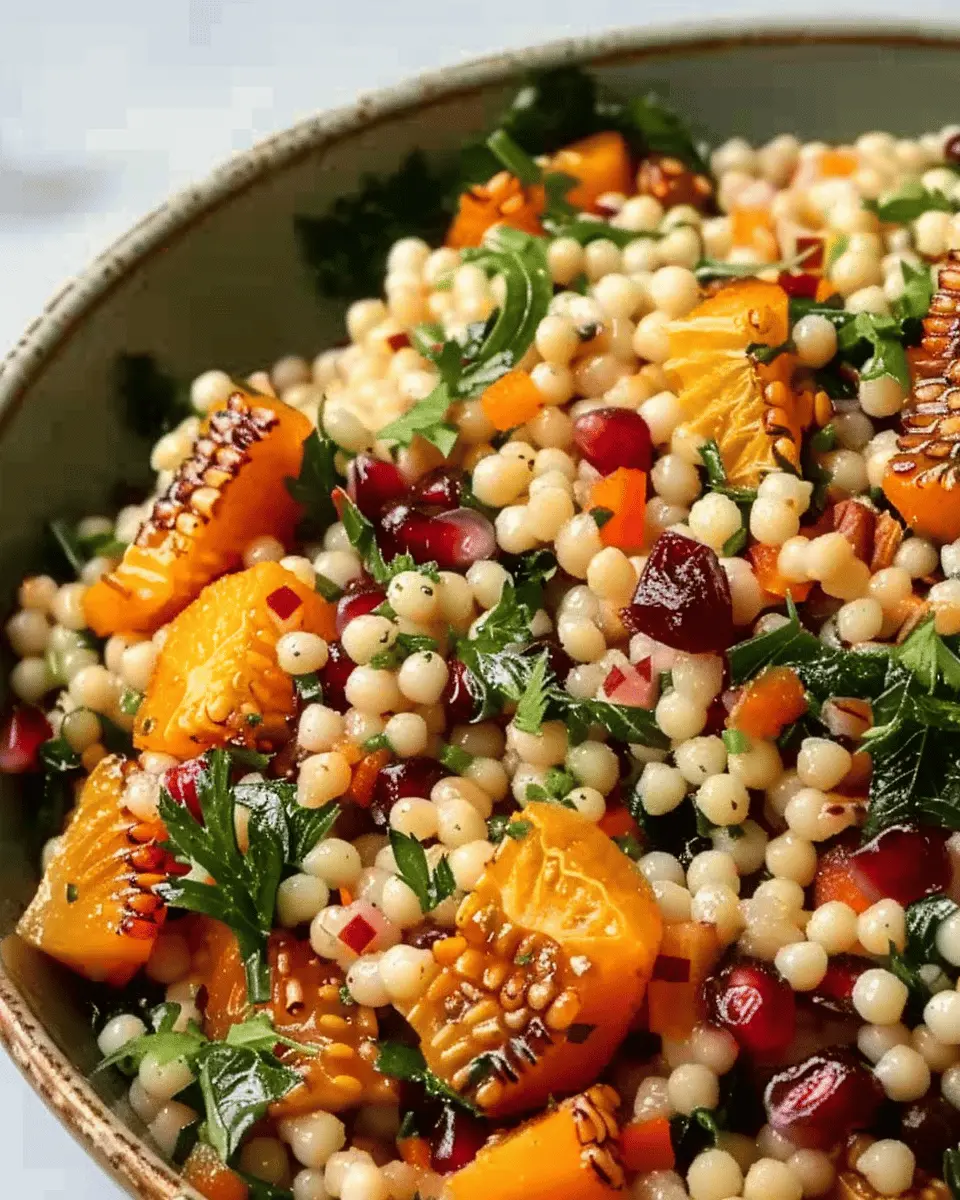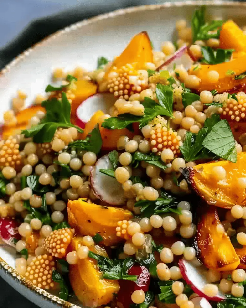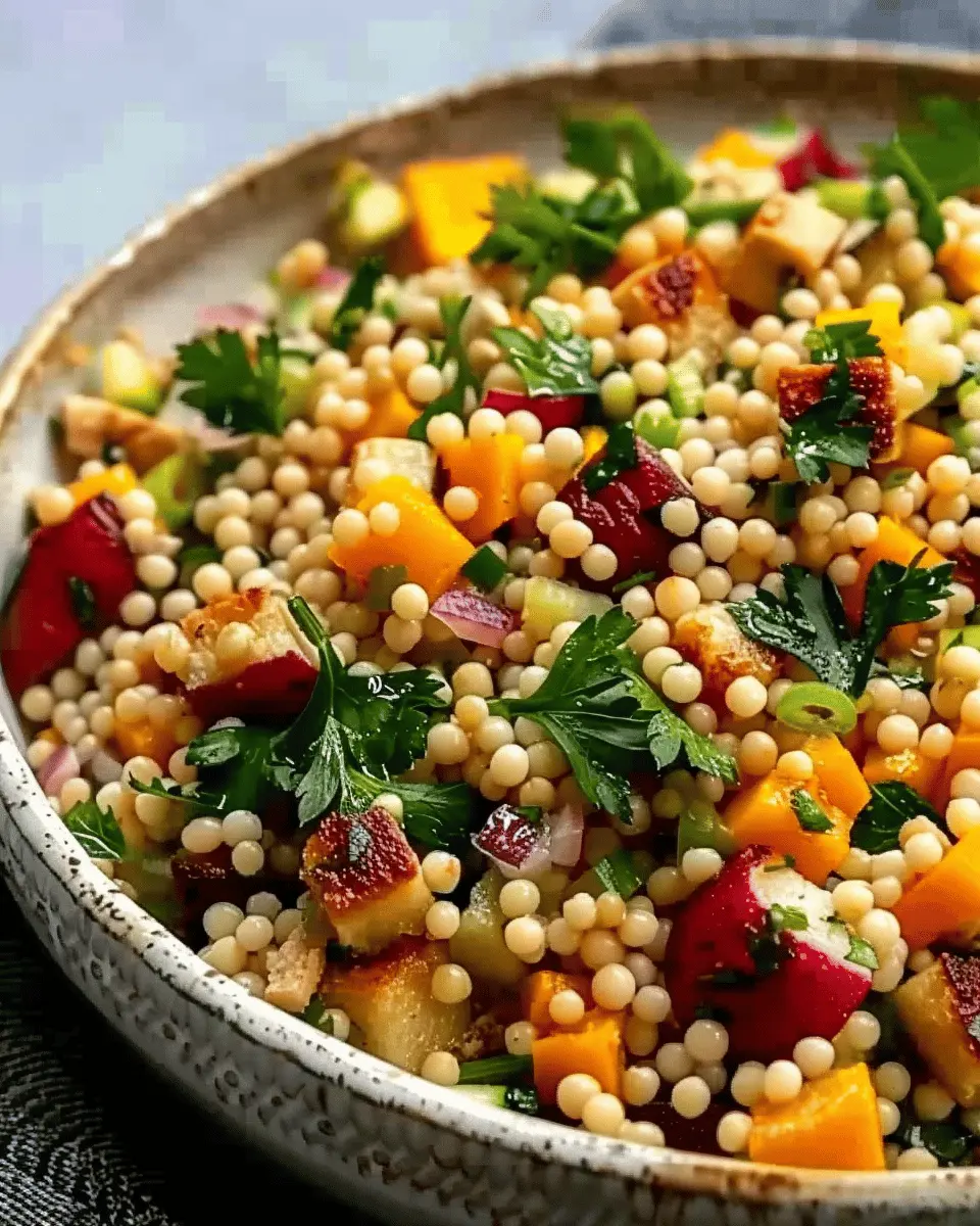 A delightful autumn-inspired dish that combines pearl couscous with seasonal vegetables and a zesty dressing.