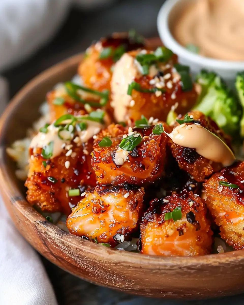 In conclusion, Bang Bang Salmon Bites are a delightful and easy way to spice up your meal rotation. Not only do these bites deliver a satisfying crunch, but they also pack a punch of flavor that will impress your friends at any gathering. The combination of crunchy texture and a creamy, spicy sauce makes for a dish that feels indulgent yet is quite simple to prepare.