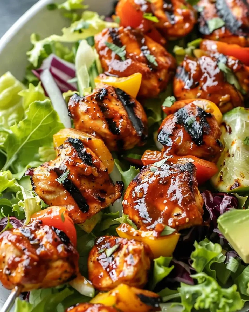 A refreshing BBQ chicken skewer salad perfect for summer gatherings.
