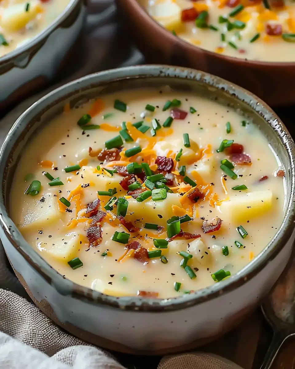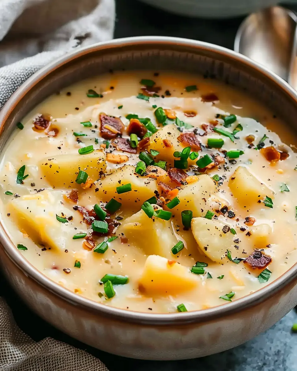 As you wrap up your culinary adventure with the best homemade loaded potato soup, take a moment to savor the satisfaction that comes from making this cozy dish. Serve it piping hot, topped with a drizzle of cream and sprinkled with freshly chopped chives or green onions.