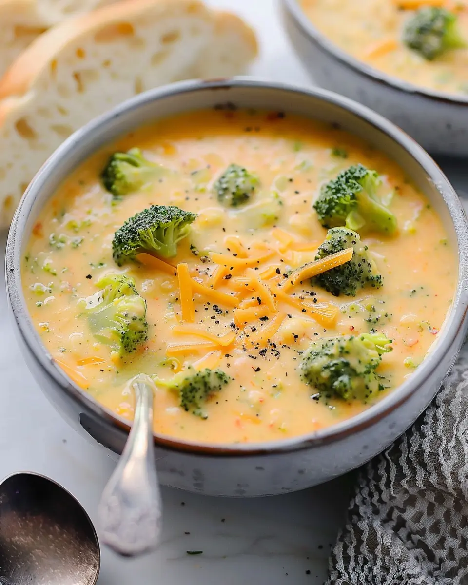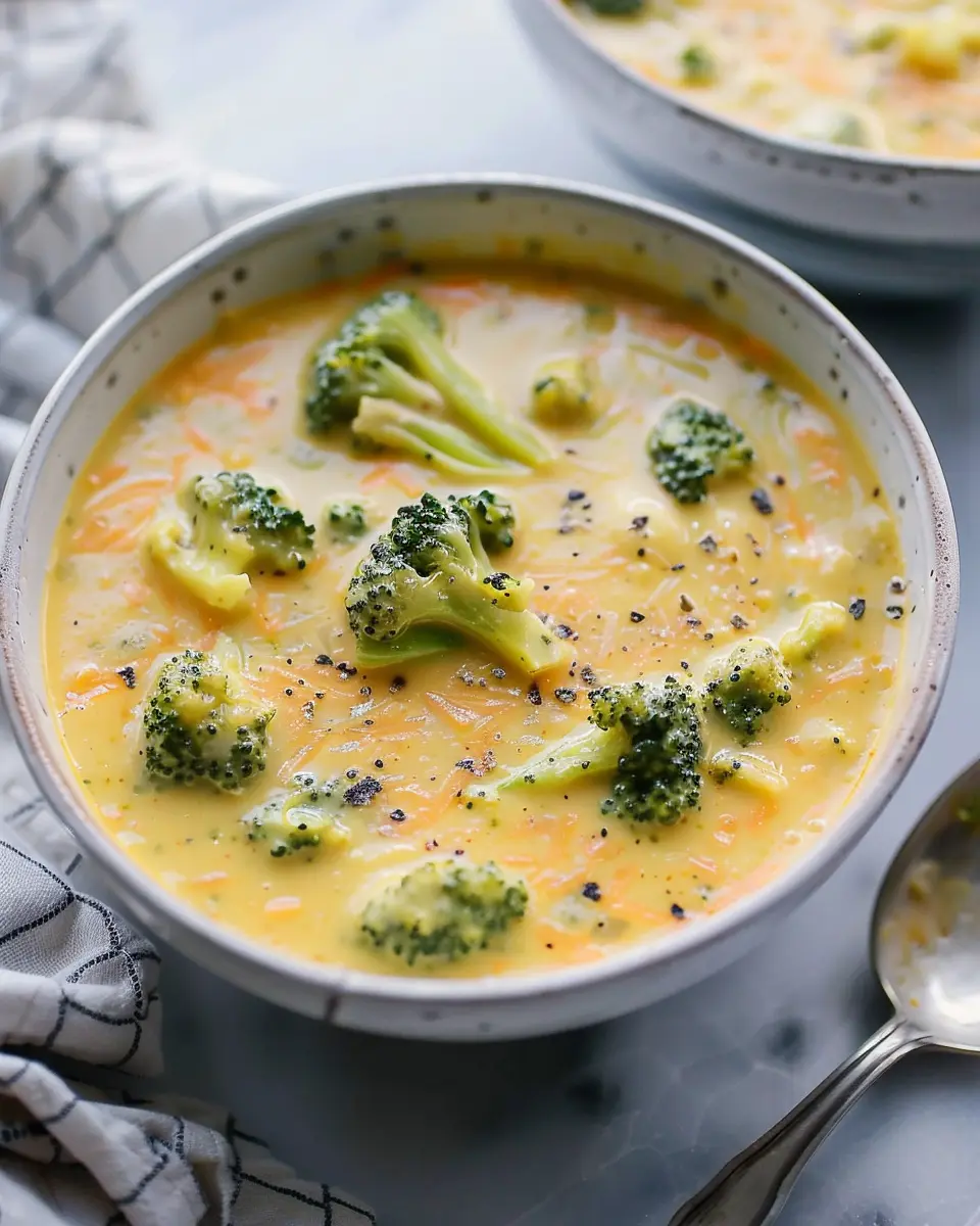 Cheddar Broccoli Soup is the ultimate comfort food, perfect for chilly evenings. This creamy, cheesy soup is packed with fresh broccoli and velvety cheddar cheese, making it a delicious and warming meal.