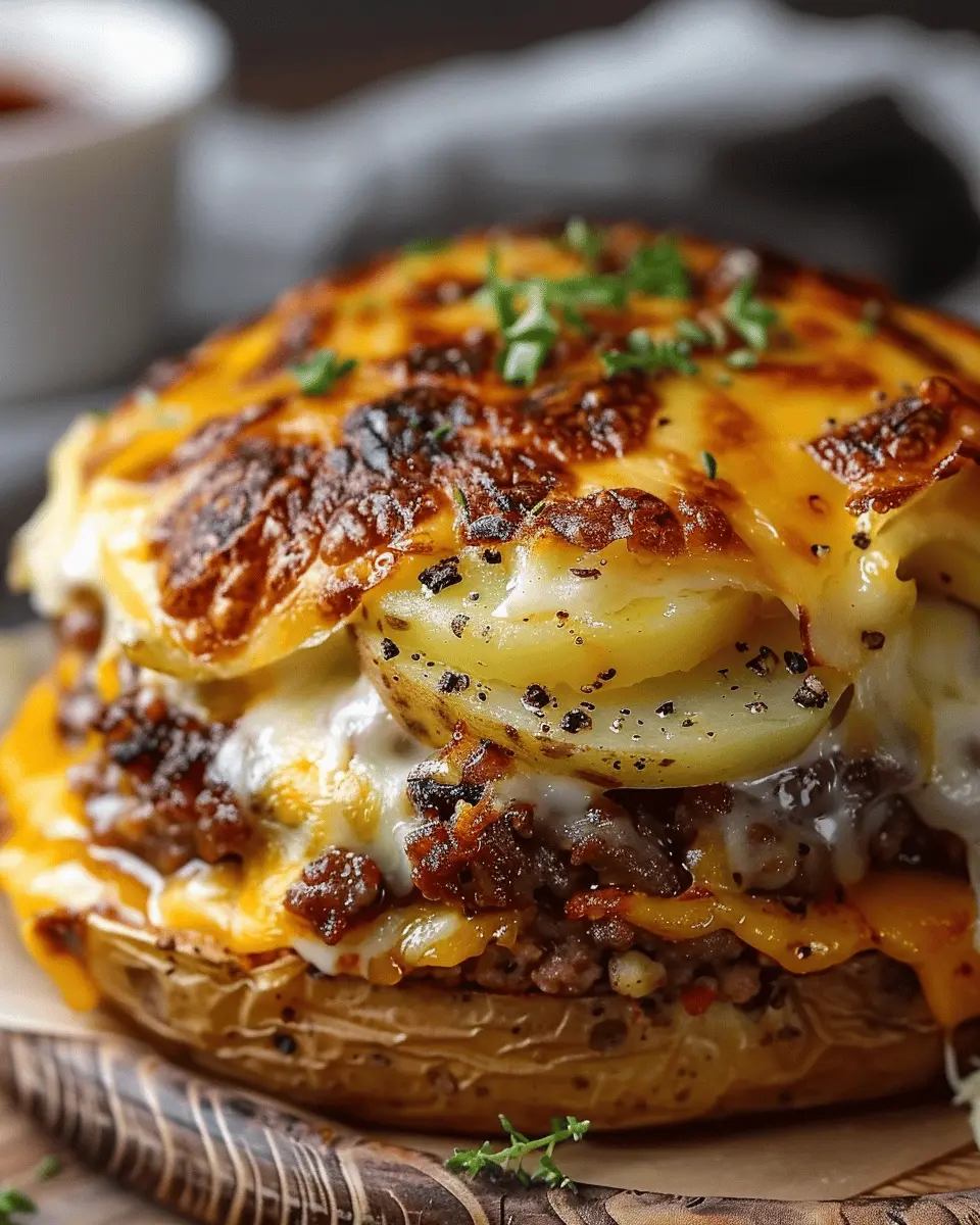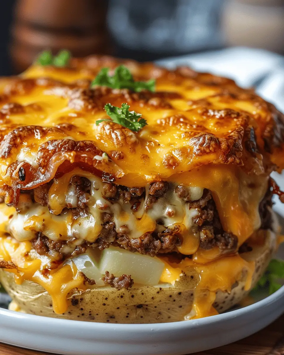 PrintCheesy Hamburger Potato Delight: Indulgent Comfort Food Recipe
