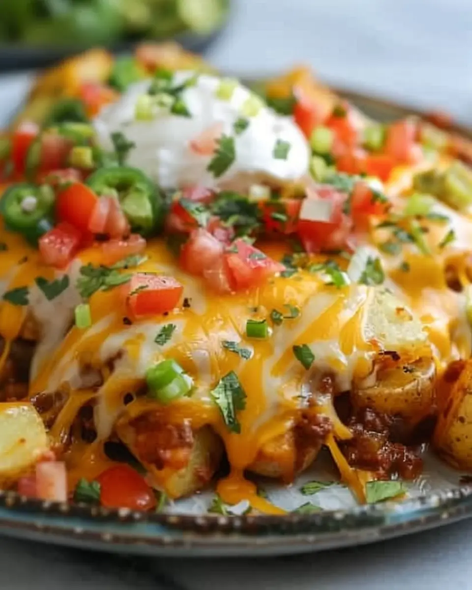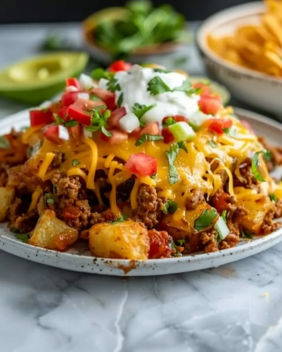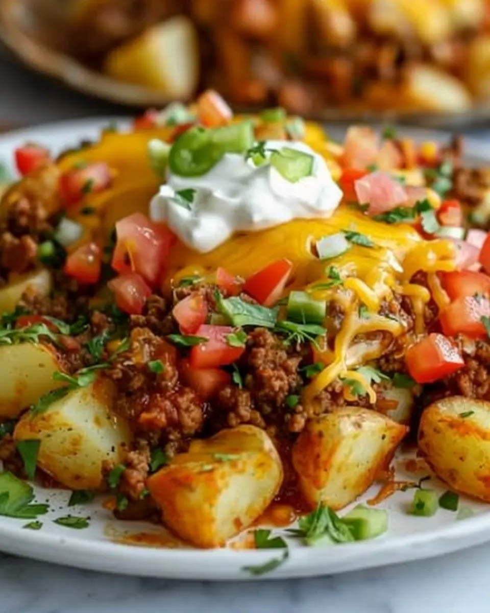 PrintCheesy Taco Potatoes: Indulgent Flavor for Your Next Meal