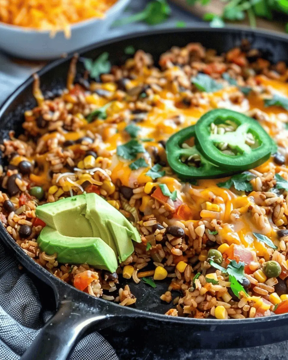 Achieving that gooey, melty cheese texture in your Cheesy Taco Rice Skillet is crucial. Make sure to use fresh, high-quality cheese. Pre-shredded cheese often contains anti-caking agents that can hinder the melting process. Add your cheese towards the end of cooking, allowing it to melt evenly without overcooking. If you want to jazz things up, a dash of cream or a sprinkle of cheese just before serving can enhance that ooey-gooey goodness.