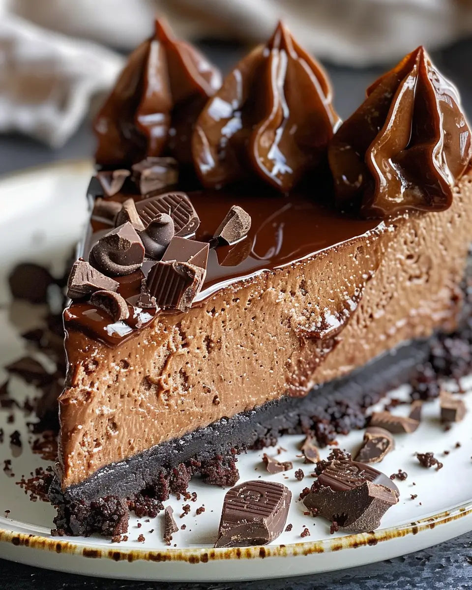 Presentation is key when it comes to showcasing your chocolate fudge truffle cheesecake. Start by slicing it into clean, even pieces, which not only looks professional but also makes serving easier. Use a contrasting plate — a white or light-colored dish can highlight the deep chocolate hues beautifully.