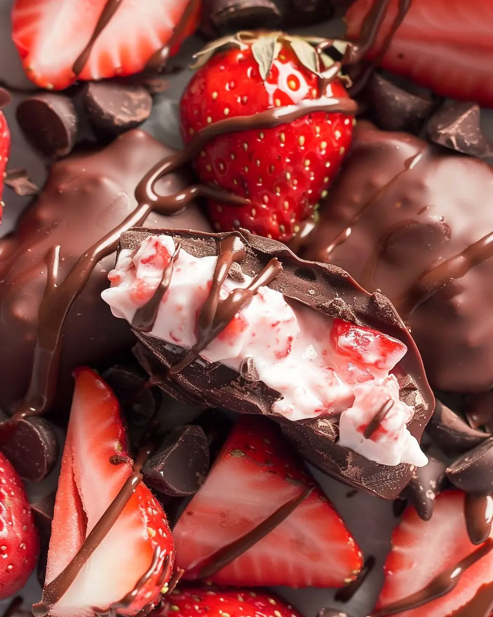 Indulge in the delightful combination of chocolate and strawberries with these easy-to-make yogurt clusters. Perfect for a sweet snack!