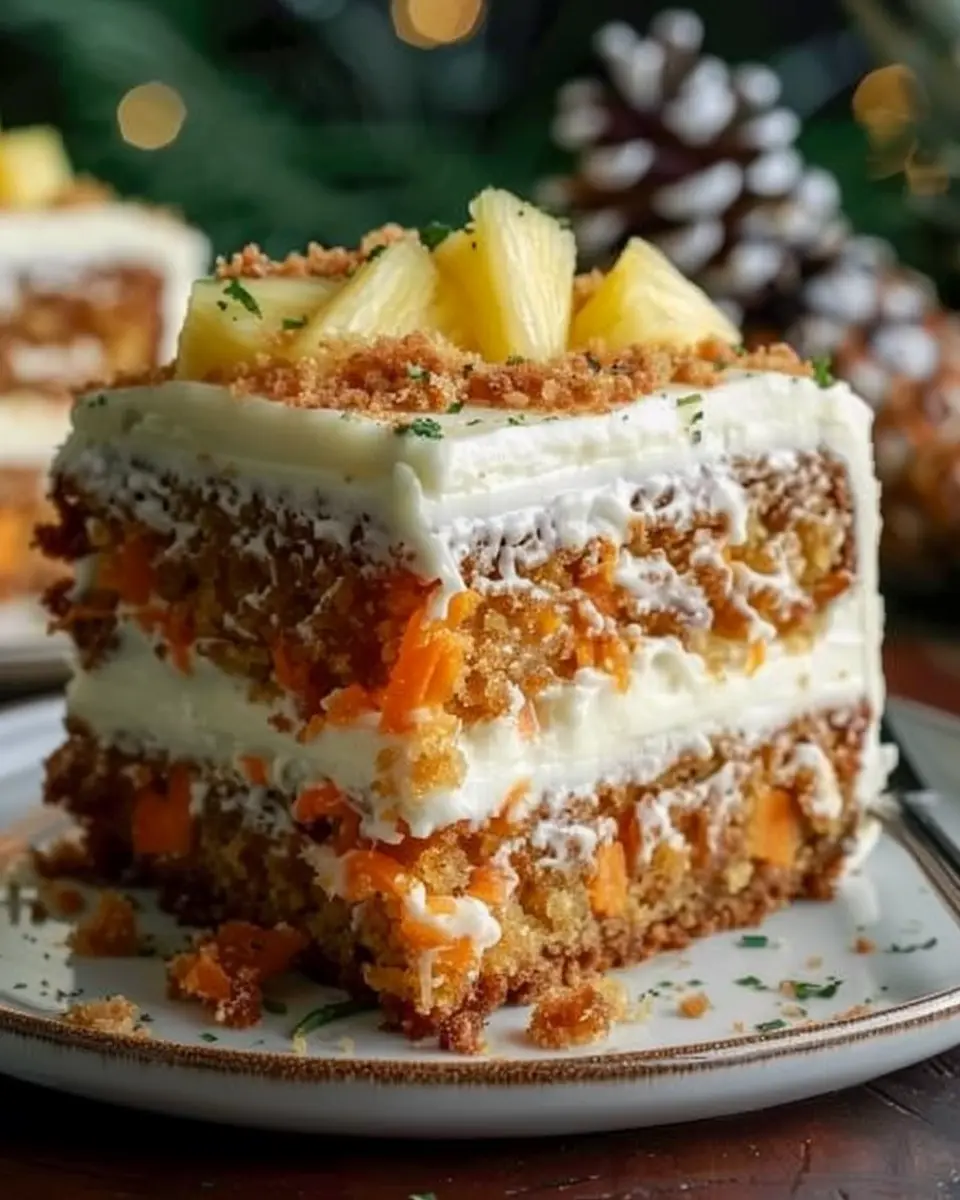 A delightful cake combining the flavors of carrot and pineapple, perfect for Christmas festivities.
