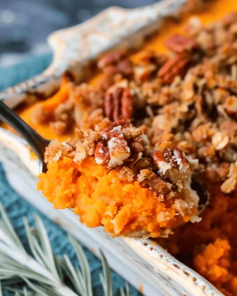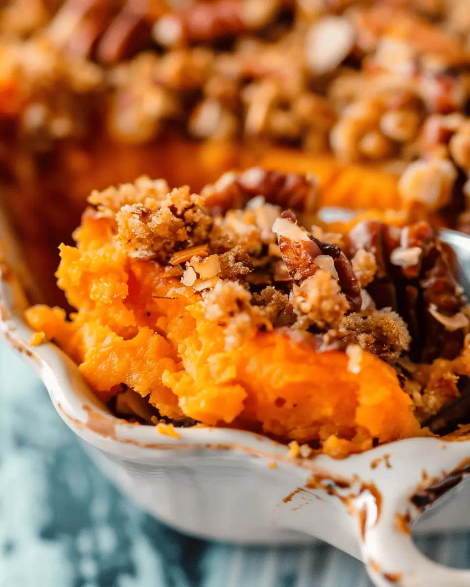 The best part of a sweet potato casserole? The topping! Here’s how to create that delightful brown sugar pecan crumble that gives it that extra crunch.