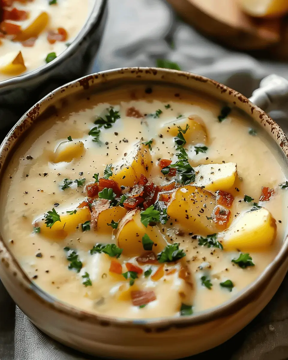PrintCreamy Potato Soup: The Best Comfort Food with Turkey Bacon