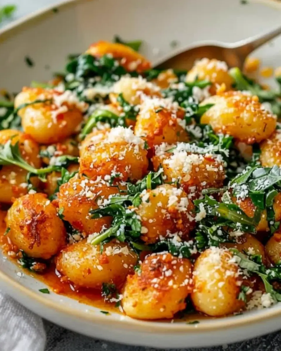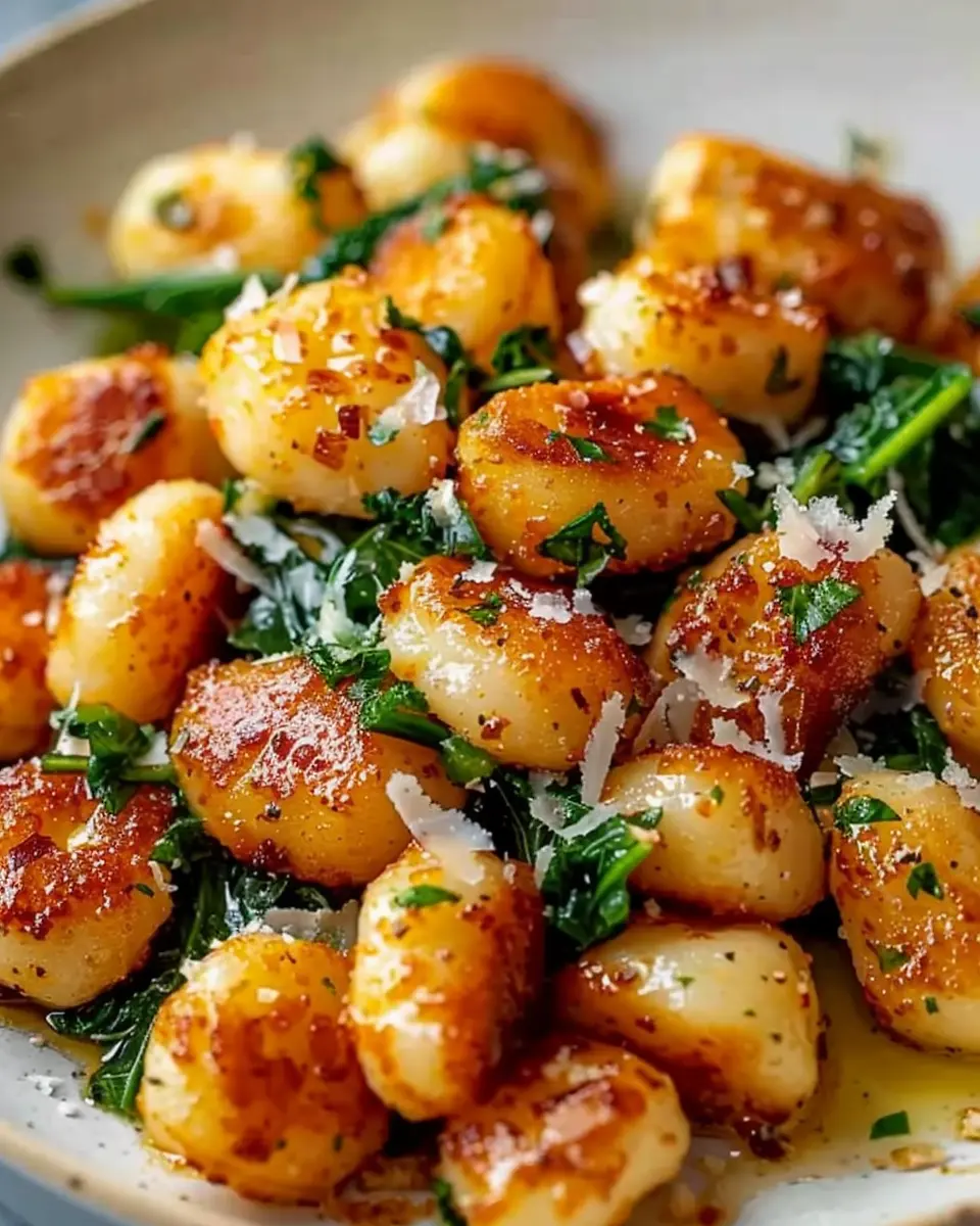 To complement your crispy gnocchi, you can whip up a quick garlic and spinach sauté that adds incredible flavor: