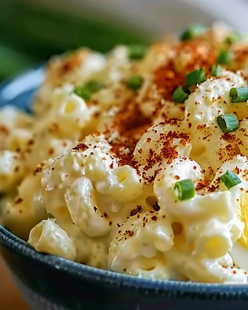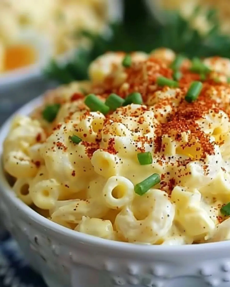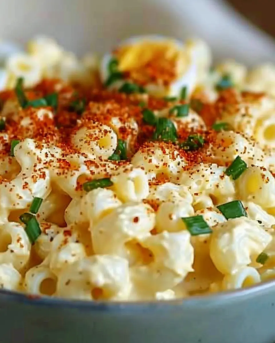 Deliciously creamy and loaded with flavor, this Deviled Egg Macaroni Salad is a delightful twist on a classic dish.