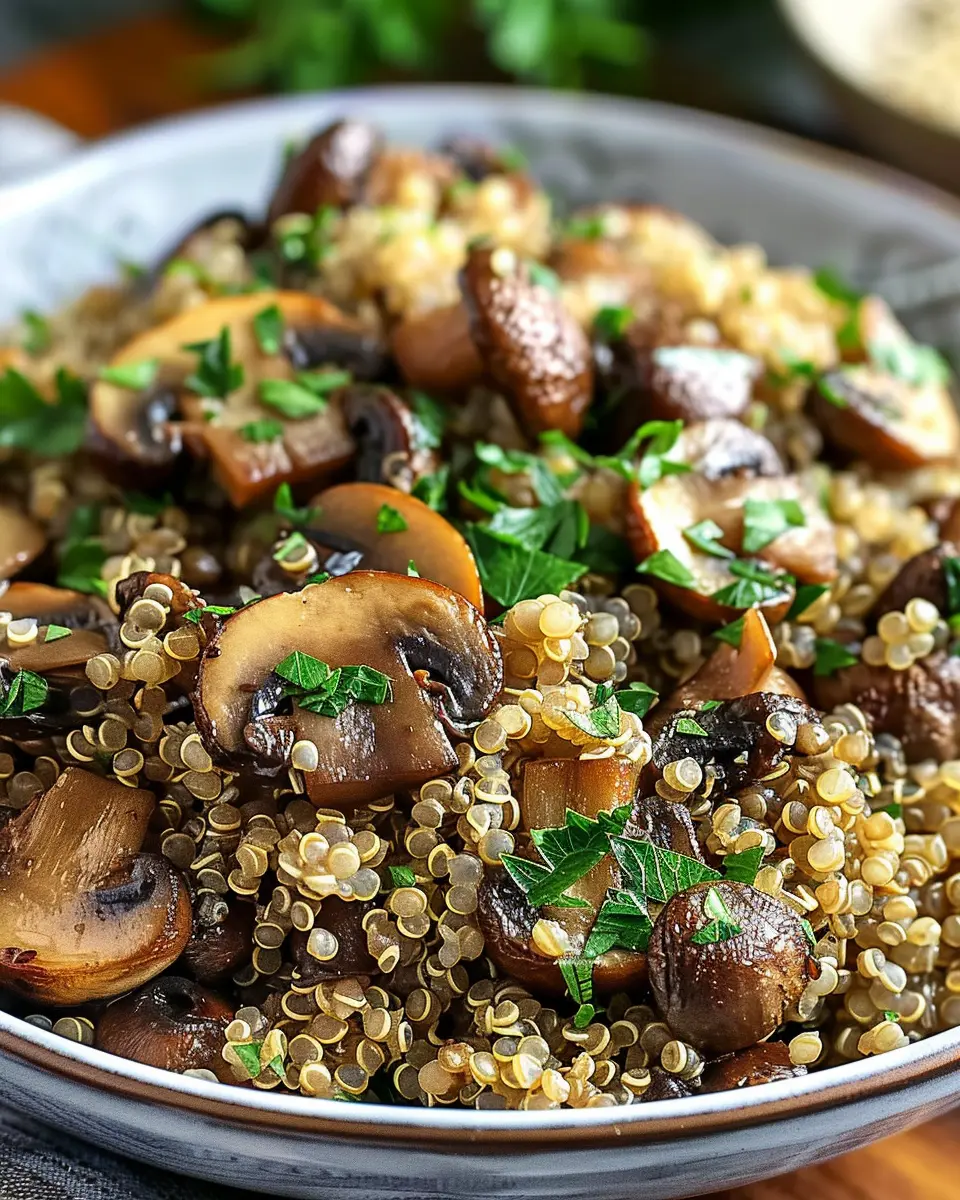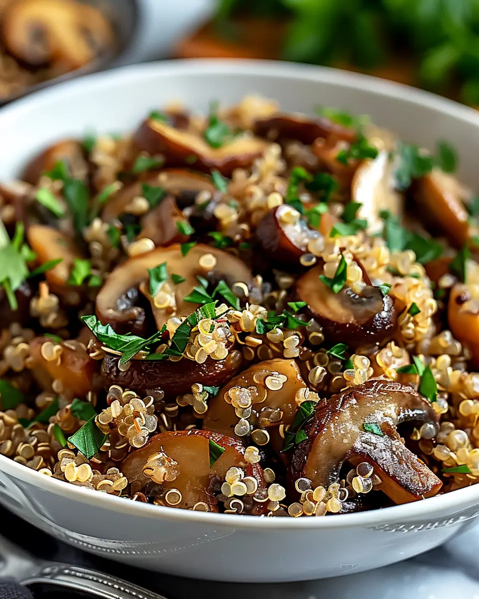 A nutritious and flavorful dish packed with garlic, mushrooms, and quinoa.