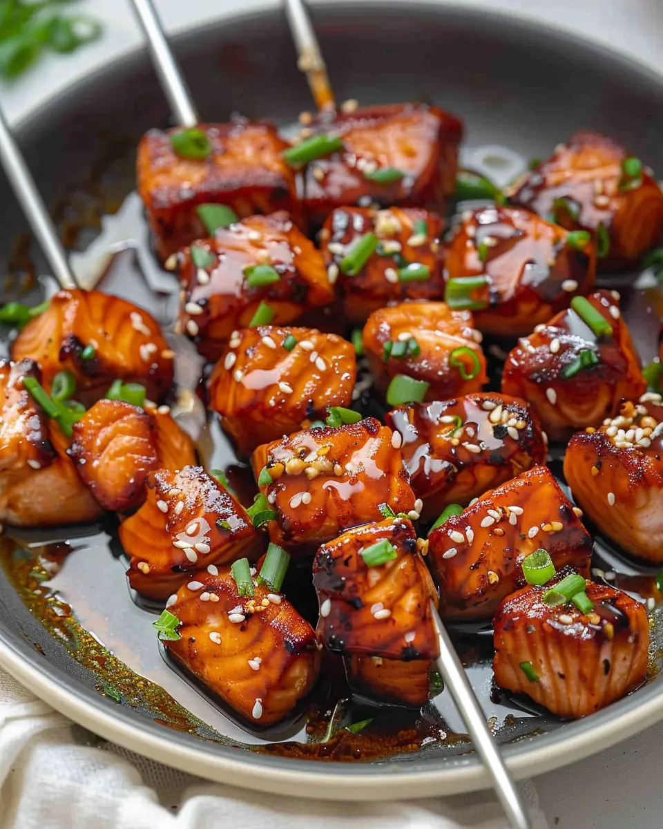 PrintHoney Garlic Salmon Bites: Easy, Flavorful Snack for Fish Lovers