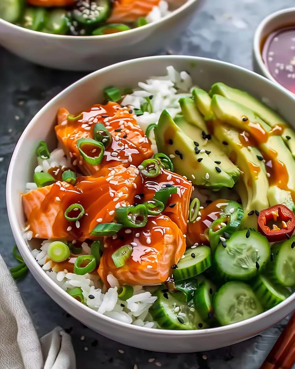 Moreover, the health benefits inherent in salmon, such as Omega-3 fatty acids, paired with the spicy kick from Sriracha, make this meal not just delicious but nourishing as well. So, whether you’re meal-prepping for the week or simply looking for a quick yet impressive dinner solution, honey sriracha salmon bowls are the perfect answer.