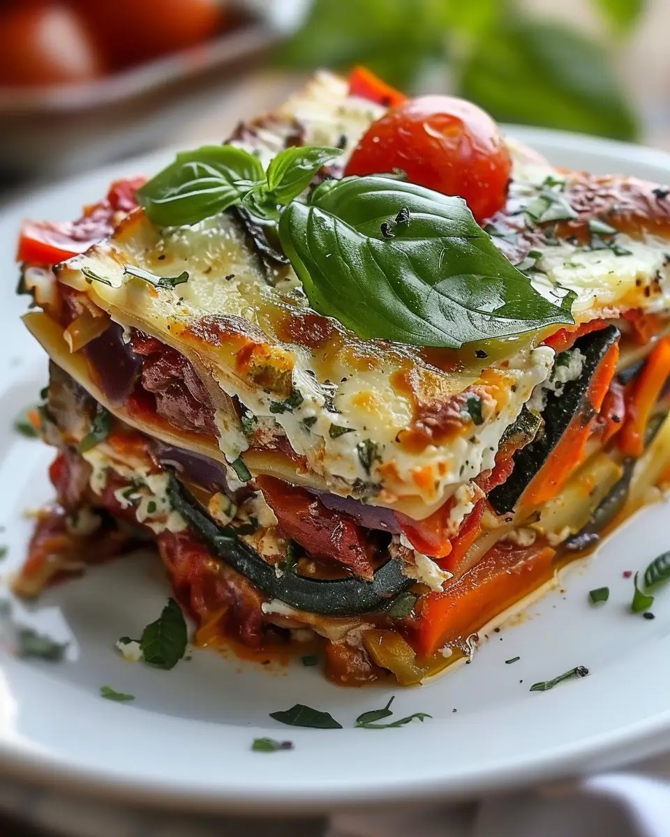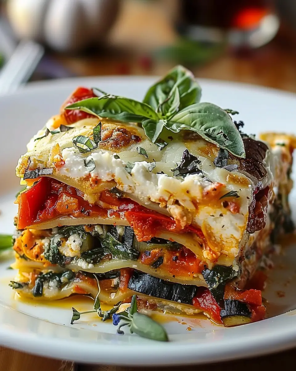 Enjoy a delightful and nutritious dish with this Layered Mediterranean Vegetable Lasagna, perfect for family meals.