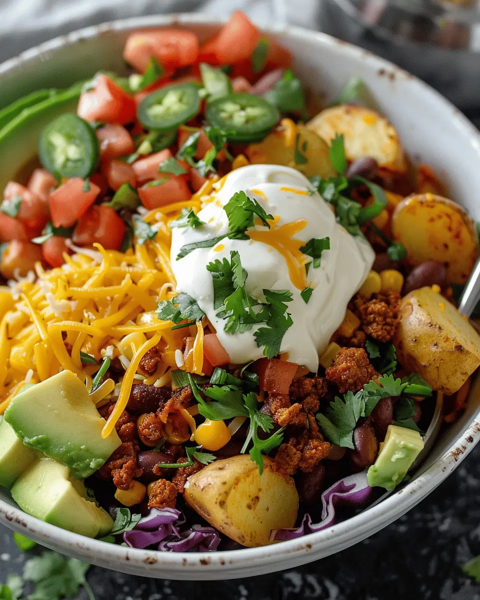 And there you have it—a scrumptious, satisfying loaded potato taco bowl that’s perfect for any occasion. Whether you’re whipping up a weeknight dinner or serving friends, this dish is sure to impress. Happy cooking!