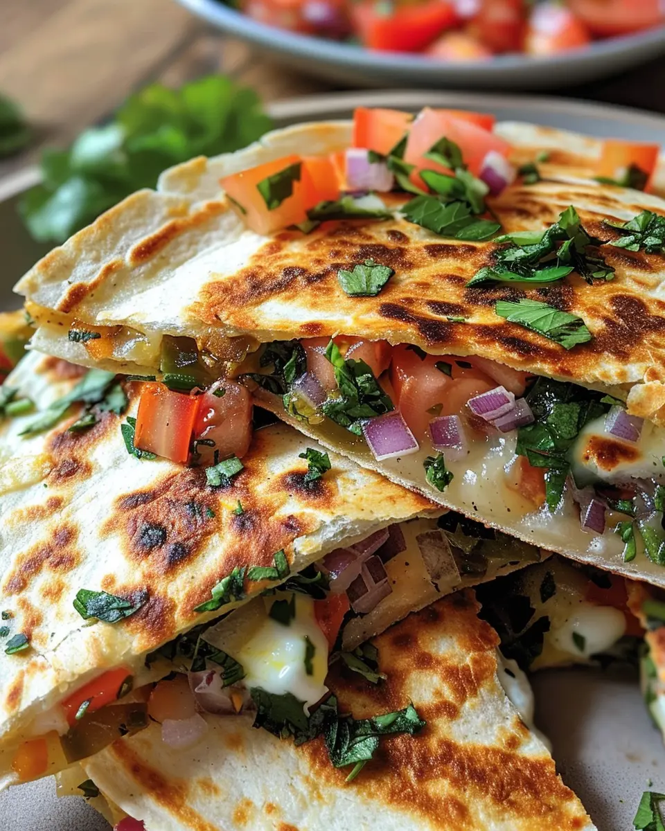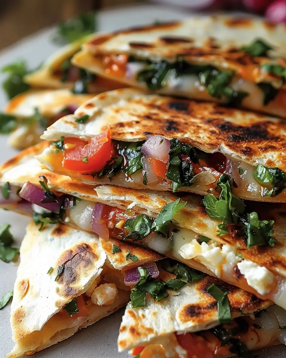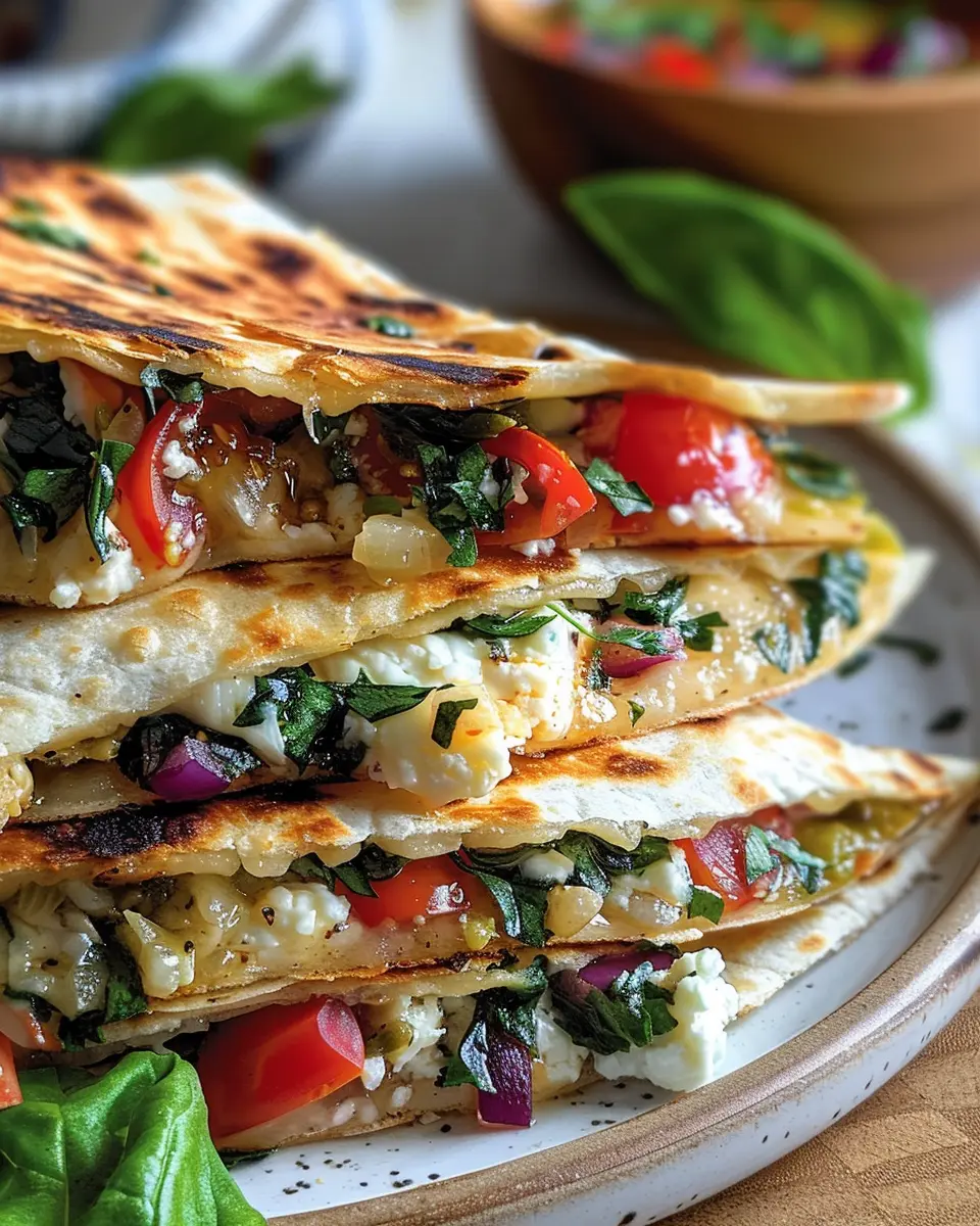Presentation matters! Slice your Mediterranean Quesadillas into wedges and arrange them on a vibrant platter. Add a small bowl of tzatziki or hummus for dipping, and sprinkle fresh herbs like parsley or dill for that pop of color. A few cherry tomatoes or olives scattered around the edge can also enhance the aesthetic.