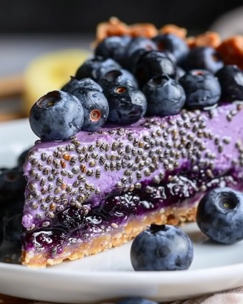 - Slice and enjoy: Cut into slices and serve chilled. Each bite of your no-bake blueberry chia seed pie will bring a satisfying blend of sweetness and health that everyone will love.