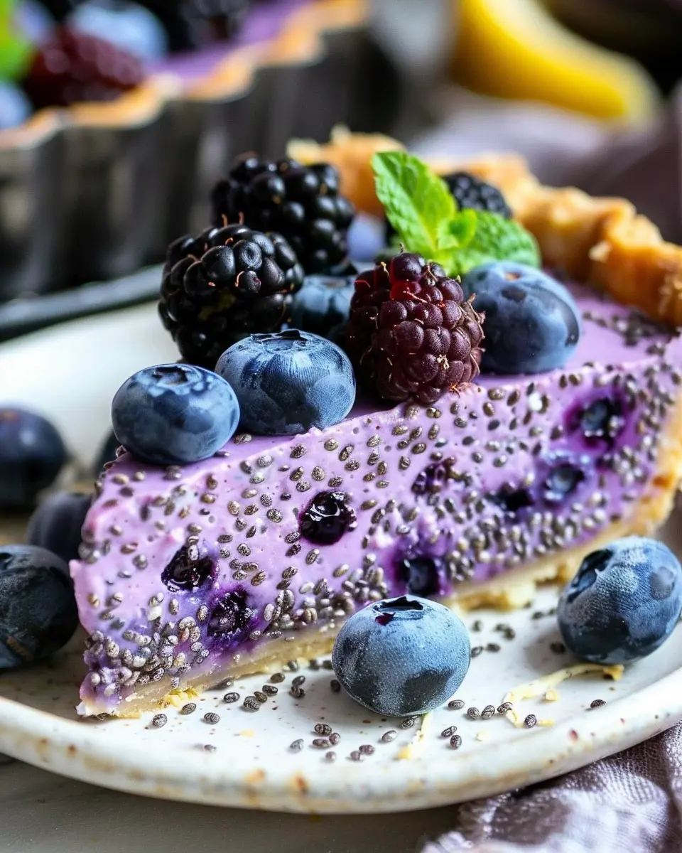 Garnish: A sprig of mint or a sprinkle of lime zest on each slice can really elevate the visual appeal of your no-bake blueberry chia seed pie.