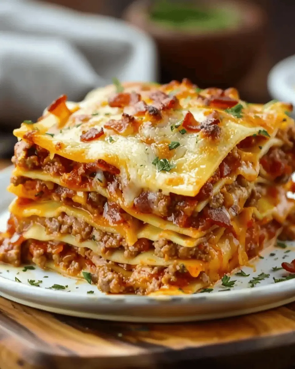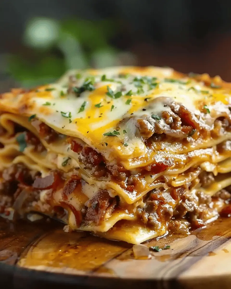 Wrapping up our journey through the Parmesan Garlic Turkey Bacon Cheeseburger Lasagna Recipe, it’s clear that this dish is a showstopper. Combining the savory flavors of turkey bacon with rich, gooey cheese creates a warm, comforting meal perfect for family dinners or casual get-togethers. With its layers of deliciousness, this lasagna is not just easy to prepare but also a guaranteed crowd-pleaser. Who doesn’t love a dish that brings together the best of both worlds—comfort food and a playful twist? Give it a try, and you may just find your new favorite recipe!