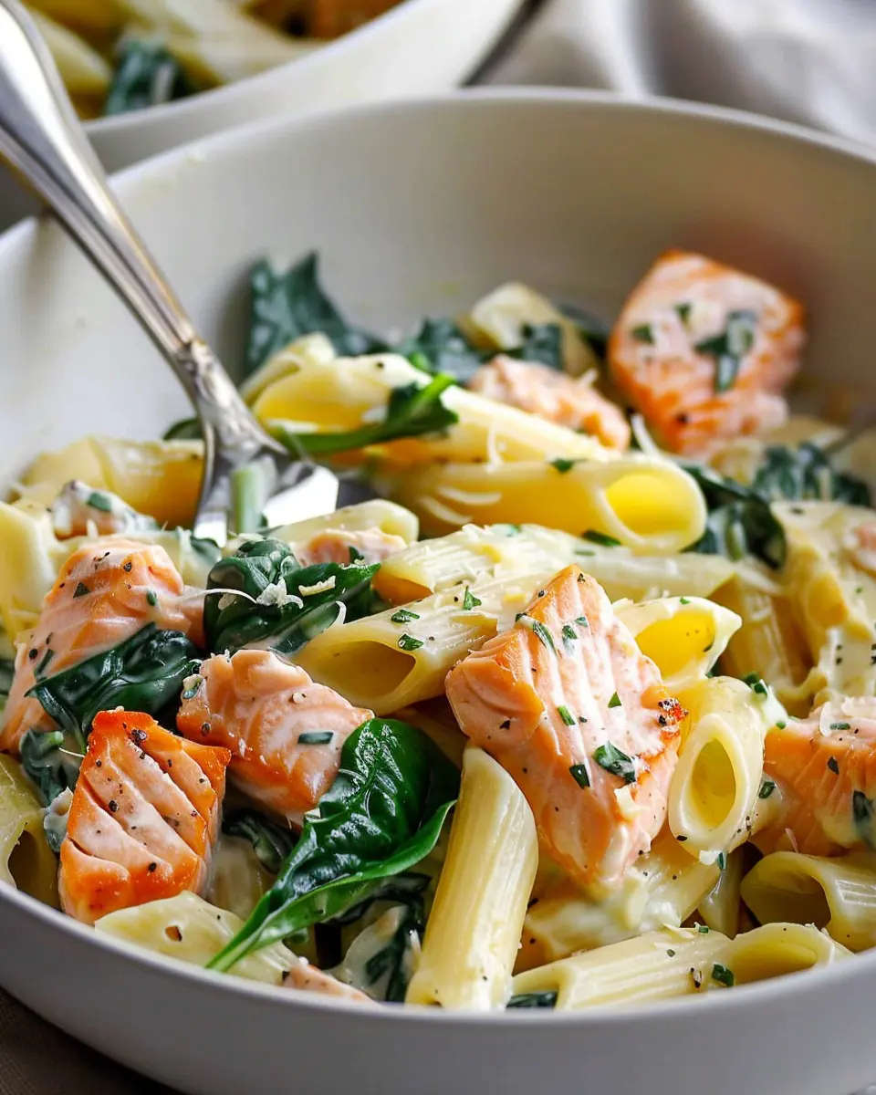 In just a few steps, you’ve transformed simple ingredients into a comforting dish that’s sure to impress. Enjoy your delicious quick salmon & spinach pasta, and don’t forget to share your experiences and variations in the comments below!