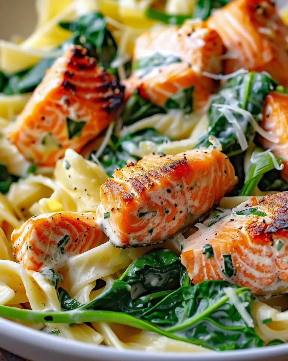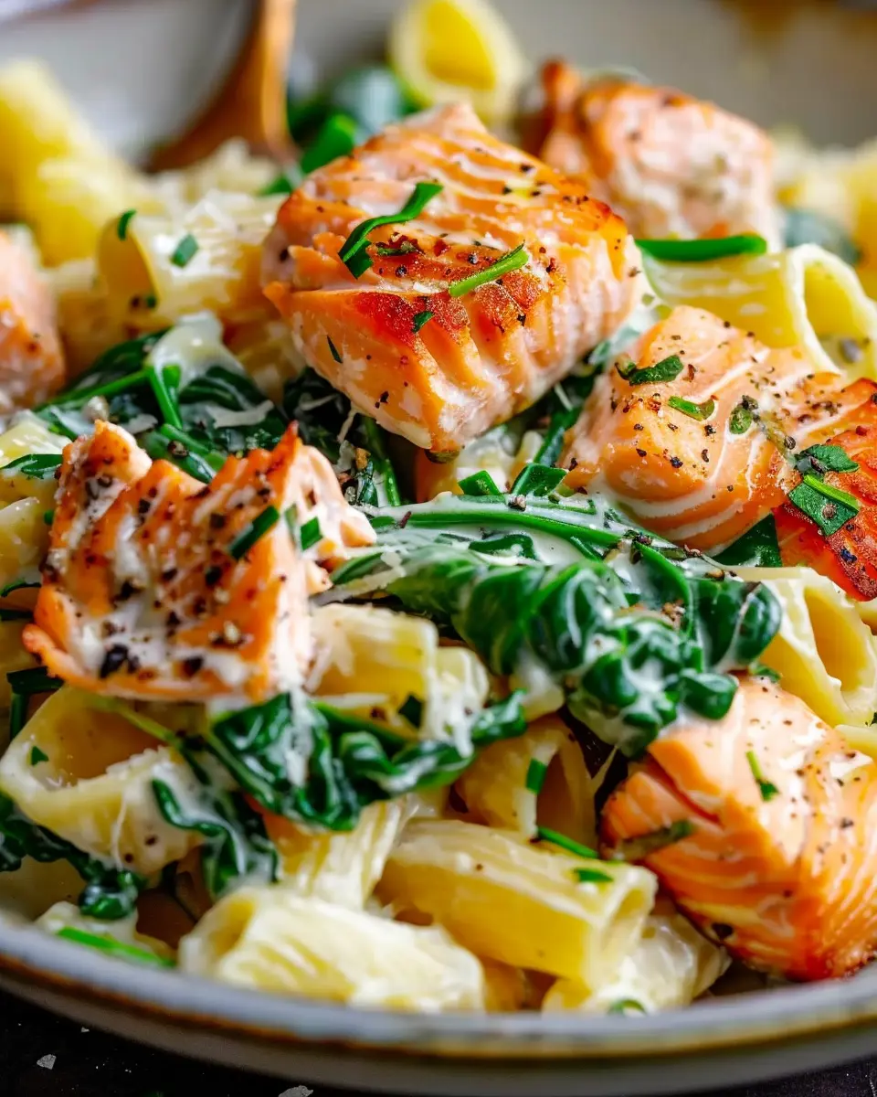 A deliciously creamy salmon spinach pasta dish that brings together the richness of salmon and the freshness of spinach for a perfect weeknight meal.