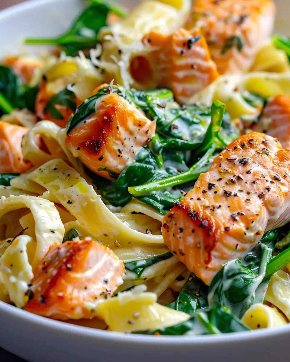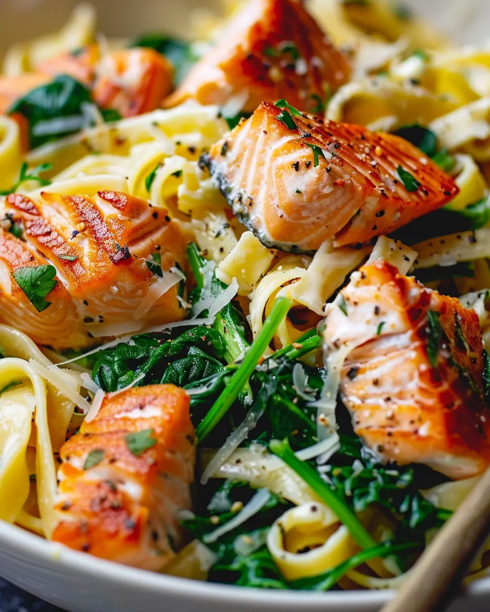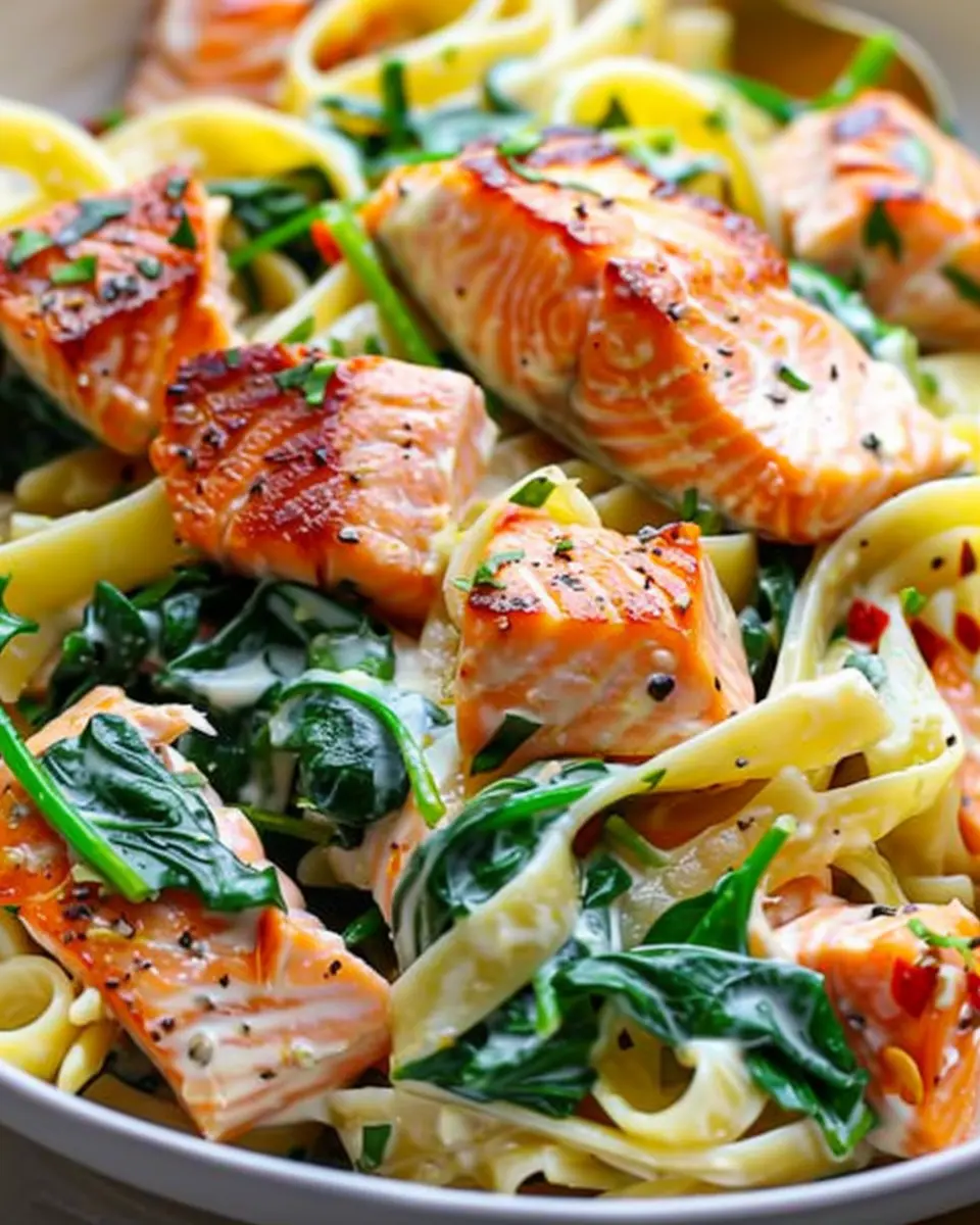 PrintSalmon Spinach Pasta Dish: Easy, Juicy Recipe for Home Cooks