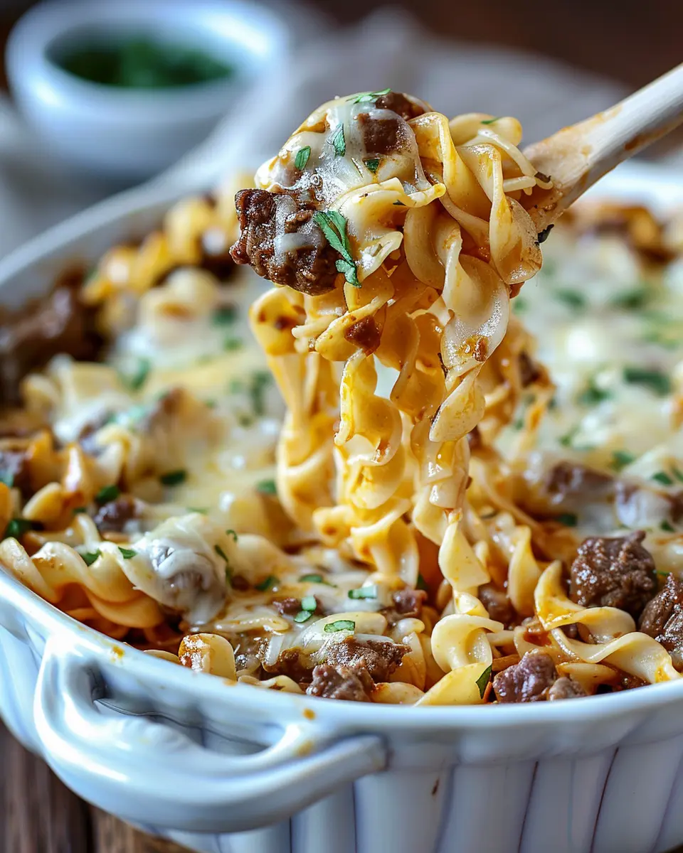 This Sour Cream Beef Noodle Casserole is the perfect comfort food that combines tender beef, creamy sour cream, and delicious egg noodles for an easy and satisfying meal.