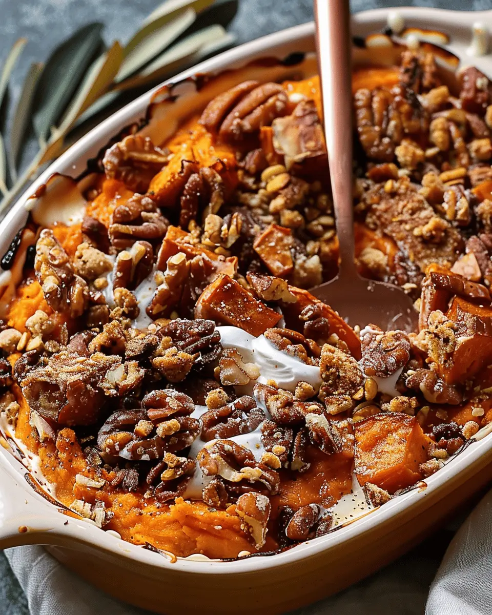 • Sprinkle Generously: Evenly distribute the topping over the mashed sweet potatoes. This adds that crunchy texture that perfectly contrasts with the creamy filling.