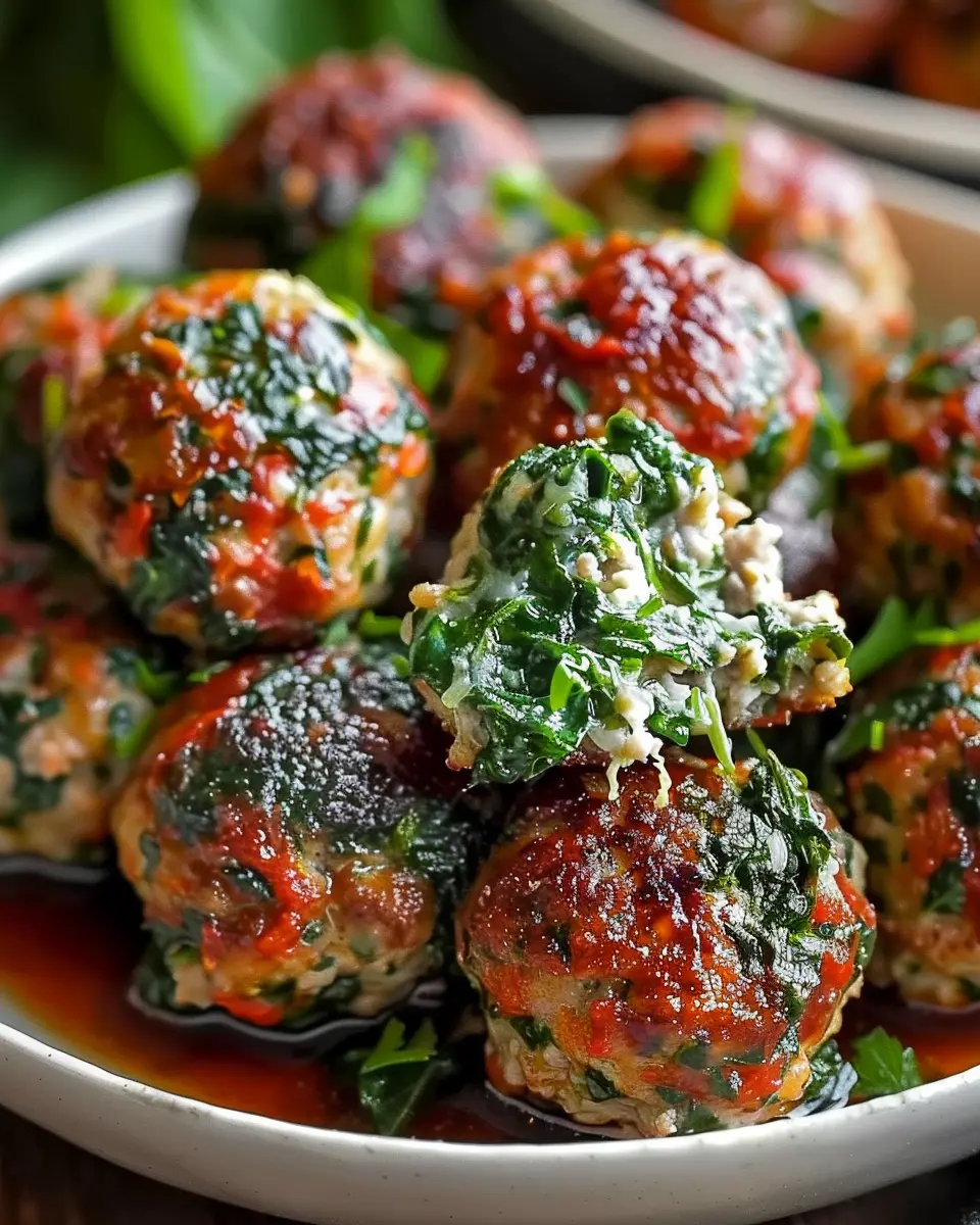 A delicious recipe for juicy and flavorful meatballs featuring spinach and garlic, perfect for family meals.