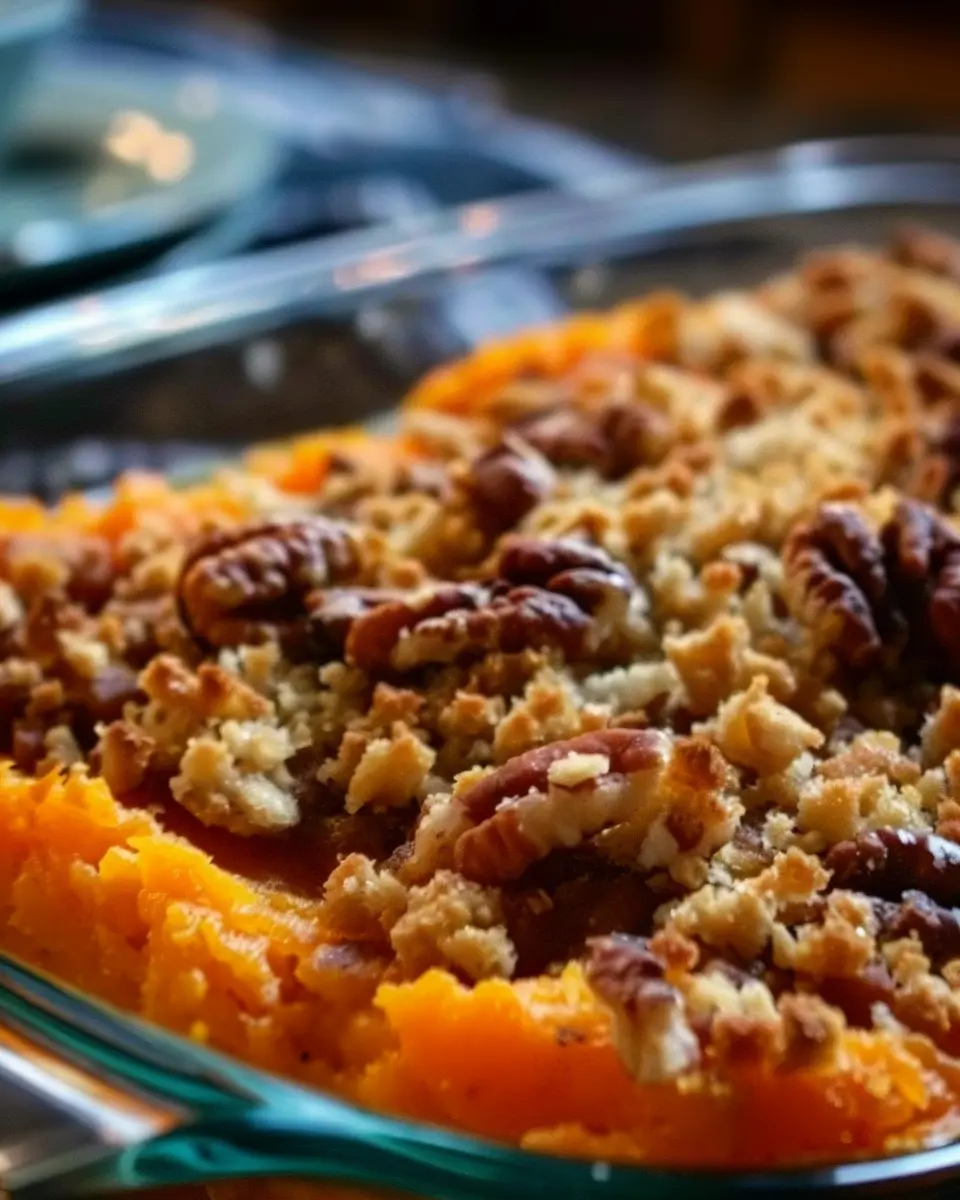 - Layer the Casserole: Spread the sweet potato filling evenly in a greased baking dish.