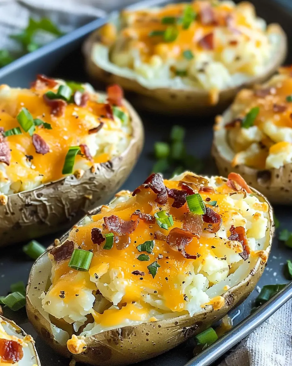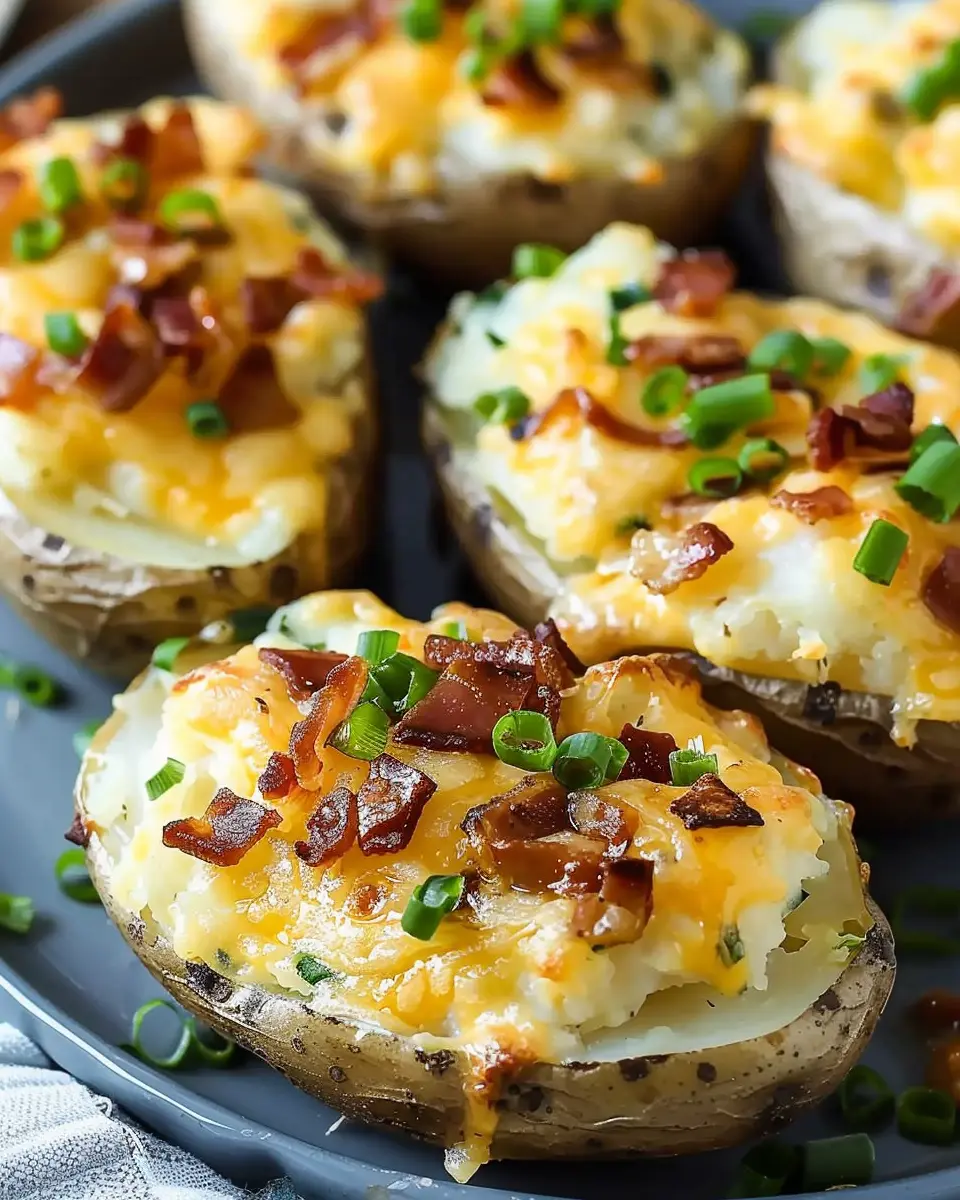 • Bake again: Place the stuffed potatoes back in the oven for about 15-20 minutes at 375°F (190°C). This will allow the tops to get crispy and the cheese to melt into that gooey goodness we all crave!