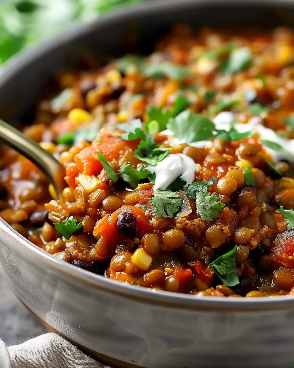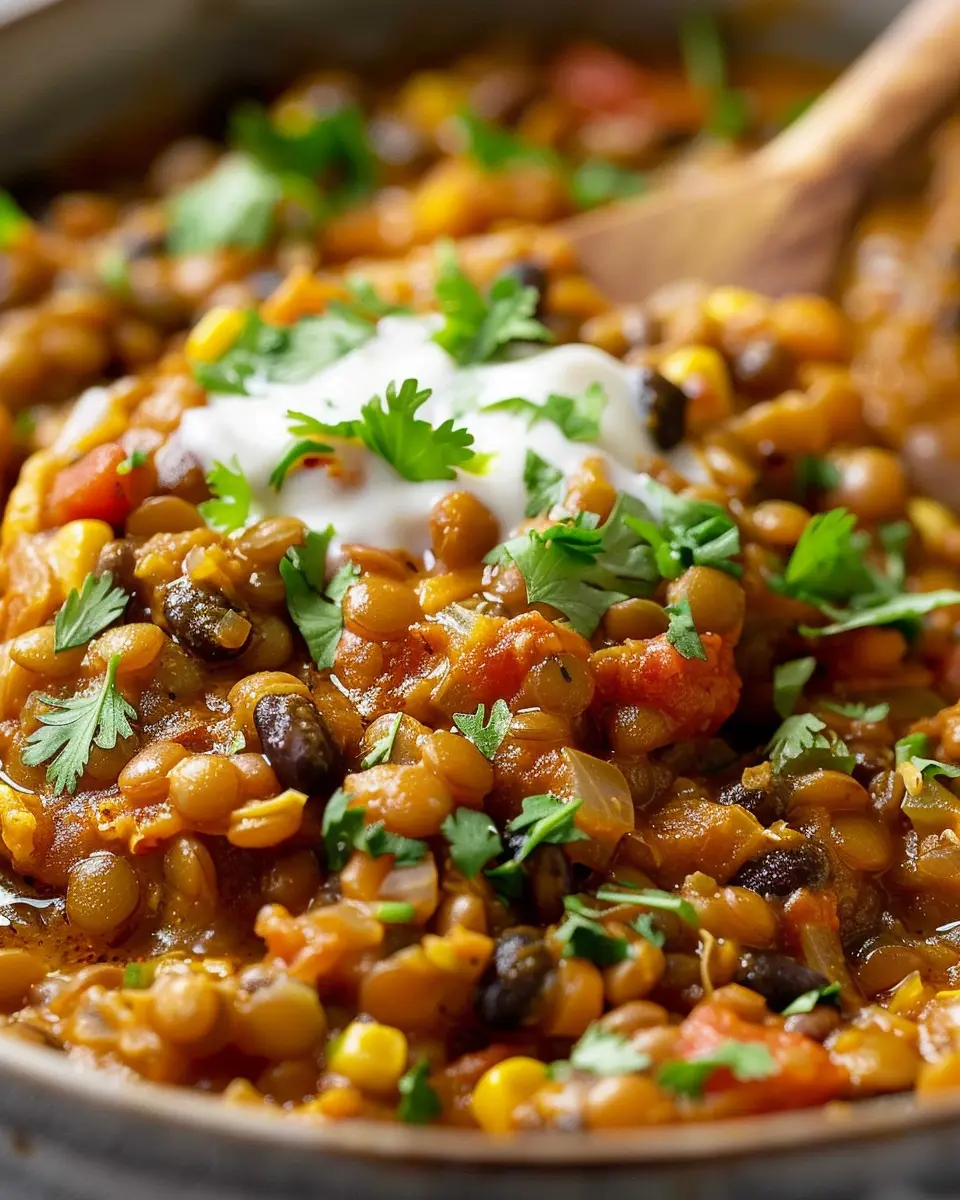 Serve your vegetarian Mexican lentils hot, perhaps alongside some warm tortillas or over a bed of rice. You can even put out extra garnishes—think sliced avocado, fresh cilantro, or diced tomatoes to personalize each plate.